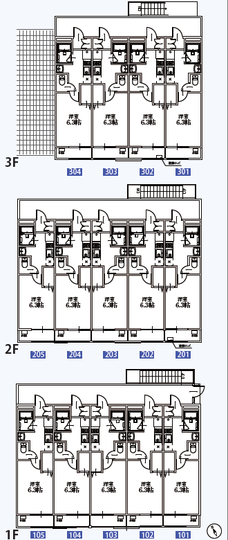 全室専有20㎡以上で居室は約6.3帖確保、快適性を重視し中長期的に安定した賃貸経営をサポートするためのプランになっております。
